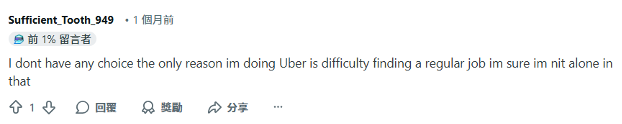 “我别无选择,我之所以做优步网约车司机,唯一的原因是我很难找到一份稳定工作,”有网友在社交媒体上坦言,“我相信不止我一个人是这种情况。”